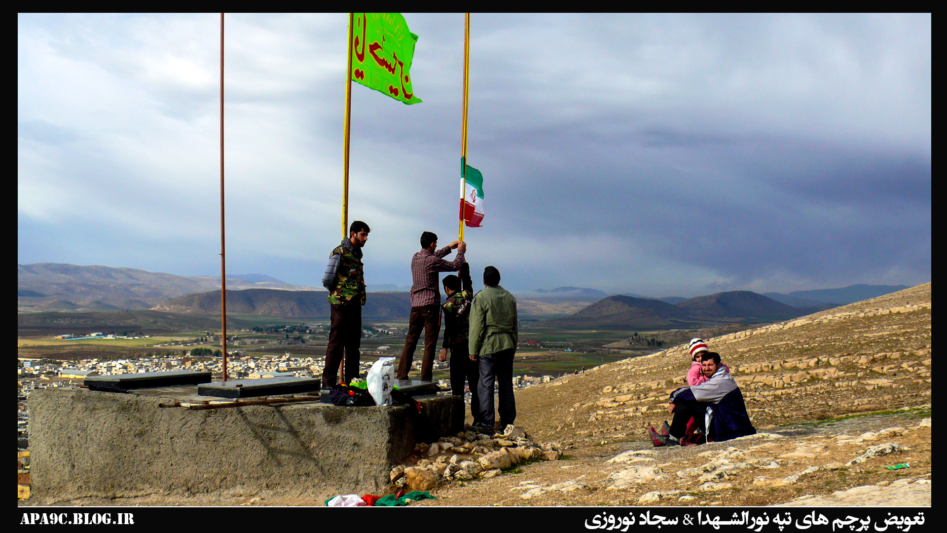 با کمک چند نفر از بانوان و بچه های فرهنگی رفتیم پرچم های تپه نورالشهدا "البته میگیم پرچم،فقط میله های پرچم بود" رو عوض کردیم،هرچند چند روز آینده دوباره باید بریم عوضشون کنیم چون به دل بچه ها ننشست،انشاء الله که بتونیم این مکان رو ازین غریبی در بیاریم،عکساش رو در ادامه ببینید،هرکی نیامد جاش خالیـــــ...
