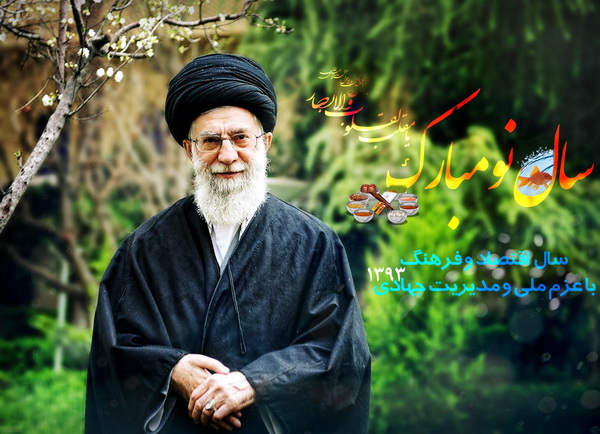 حضرت آیت الله خامنه ای رهبر معظم انقلاب اسلامی در پیامی به مناسبت آغاز سال ۱۳۹۳ هجری شمسی، با تبریک سال نو و نوروز به همه ی هم میهنان و ایرانیان عزیز در سراسر جهان بخصوص خانواده های معظم شهدا و ایثارگران و مجاهدان راه اسلام و ایران، سال جدید را سال «اقتصاد و فرهنگ، با عزم ملی و مدیریت جهادی» نامگذاری کردند.